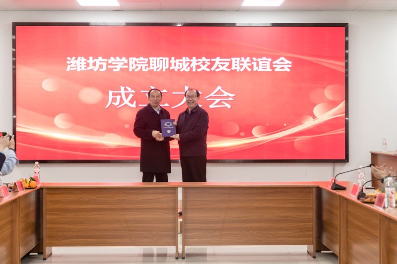 2026 年 3 月 21 日,潍坊学院聊城校友联谊会成立大会在聊城隆重举行,潍坊学院党委委员、副校长李英德、潍坊学院原党委委员、副校长丁子信出席大会并讲话,学校合作发展处相关负责人、兄弟校友会代表及聊城地区校友代表参加活动。