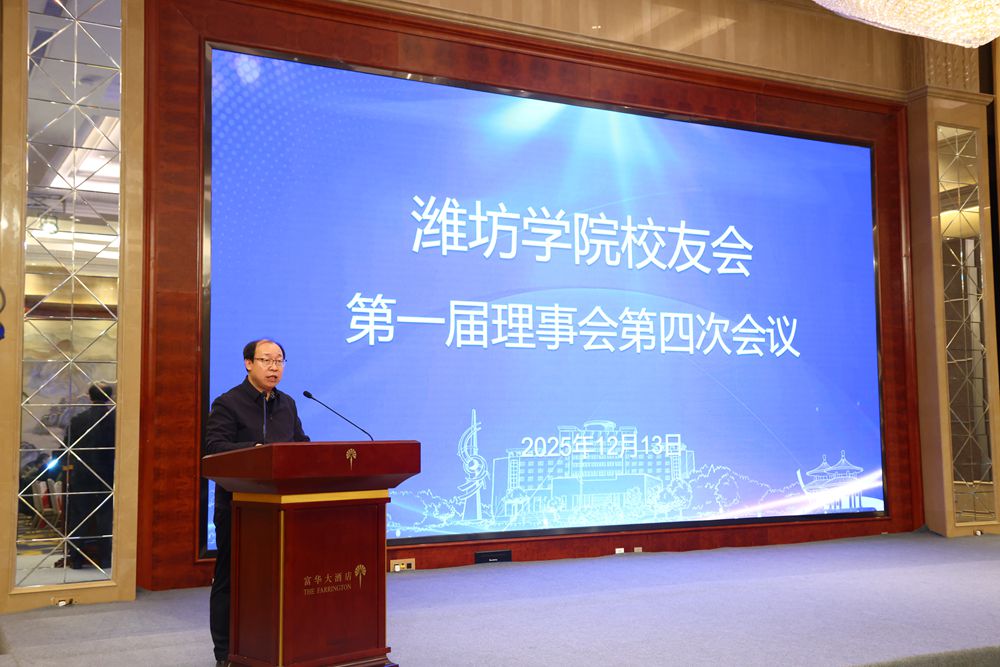本网讯 12月13日,潍坊学院校友会第一届理事会第四次会议召开。学校党委副书记、校长王霞出席会议并讲话,学校党委委员、副校长、校友会常务副会长李英德主持会议并作校友会理事会2025年工作报告。